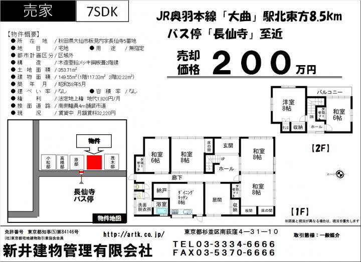 | 物件名 | 大仙市板見内字長仙寺5番地 7SDK 200万円 |