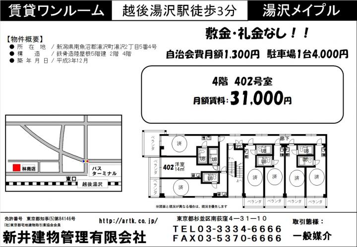 南魚沼郡湯沢町湯沢2-5-4 湯沢メイプル402号室