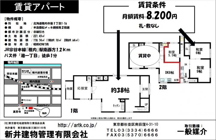 【賃貸物件】稚内市港1-1-16 1階 貸事務所 8,200円(その他)|JR宗谷本線 稚内駅 1.2㎞|新井建物管理|全国の不動産、収益物件、中古住宅、賃貸・売買物件
