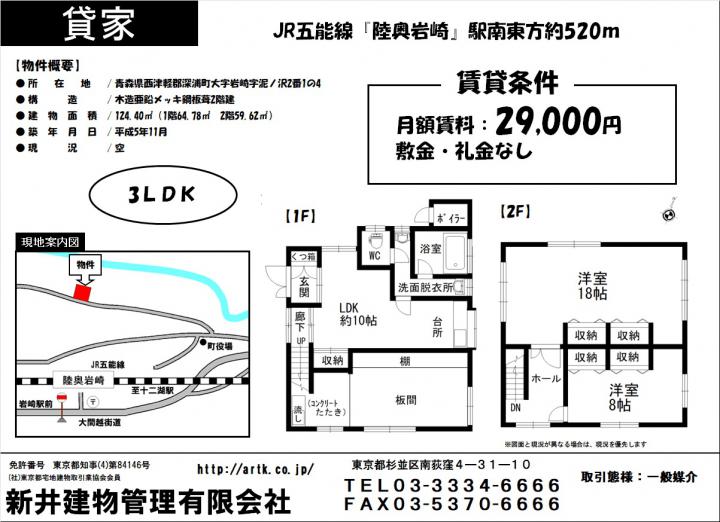 西津軽郡深浦町大字岩崎字泥ノ沢2番地1の4  2 LDK 124.40㎡1993年11月29,000円なし