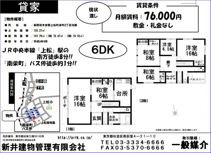 | 物件名 | 木曽郡上松町栄町2丁目38番 6DK 76,000円 |