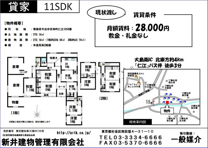 大島南IC 北東方約4km | 今治市吉海町仁江1054番 | 5 SDK | 272.18㎡(1階208.44㎡ 2階63.74㎡) | 1957年00月 | 9,800円 | なし なし |