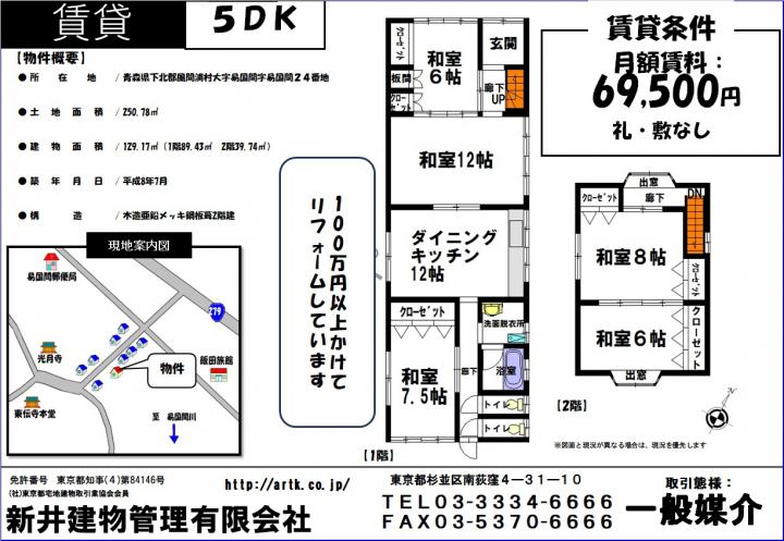 | 物件名 | 青森県下北郡風間浦村大字易国字易国間24 5DK 21,000円 |
