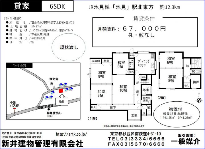 | 物件名 | 氷見市中波上野436-3-2 6LDK 58,900円 |