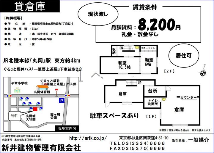 【賃貸物件】坂井市丸岡町霞町1丁目32-1 貸倉庫 8,200円(その他)|JR北陸本線『丸岡』駅 東方4km|新井建物管理|全国の不動産、収益物件、中古住宅、賃貸・売買物件
