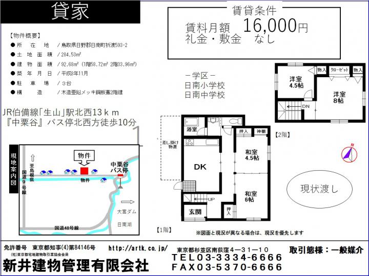 | 物件名 | 日野郡日南町折渡593-2 4DK 9,800円 |