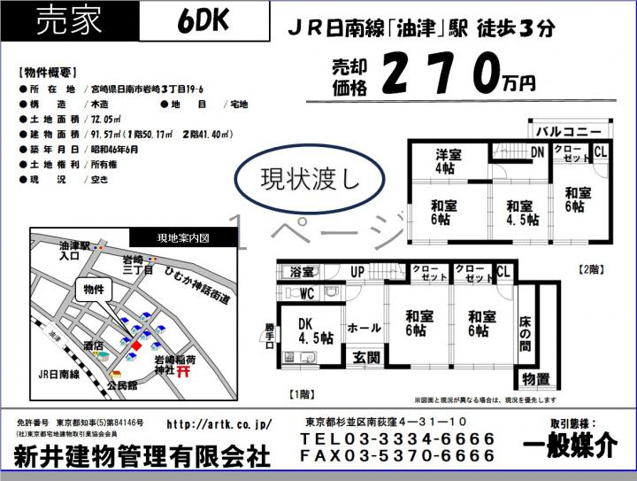 | 物件名 | 日南市岩崎3丁目19-6 6DK 19,800円 |
