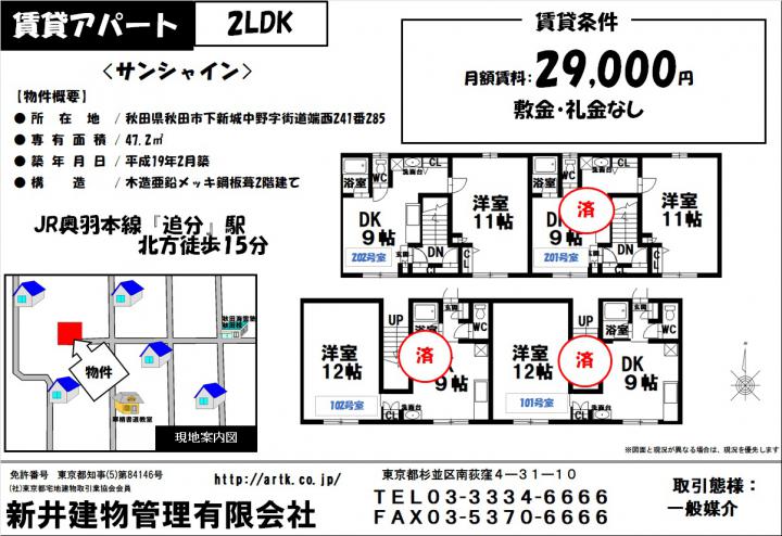 | 最寄駅 | 所在地 | 間取り | 面積 | 賃料 管理費等 | 敷金 礼金 |