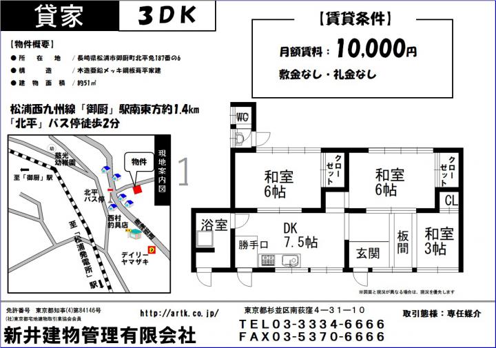 | 物件名 | 松浦市御厨町北平免187番の6_3DK 10,000円 |