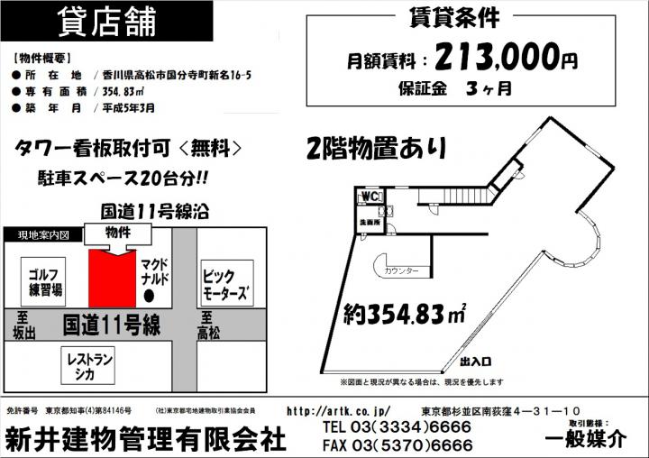 | 物件名 | 高松市国分寺町新名16-5 貸店舗C 21.3万円 |