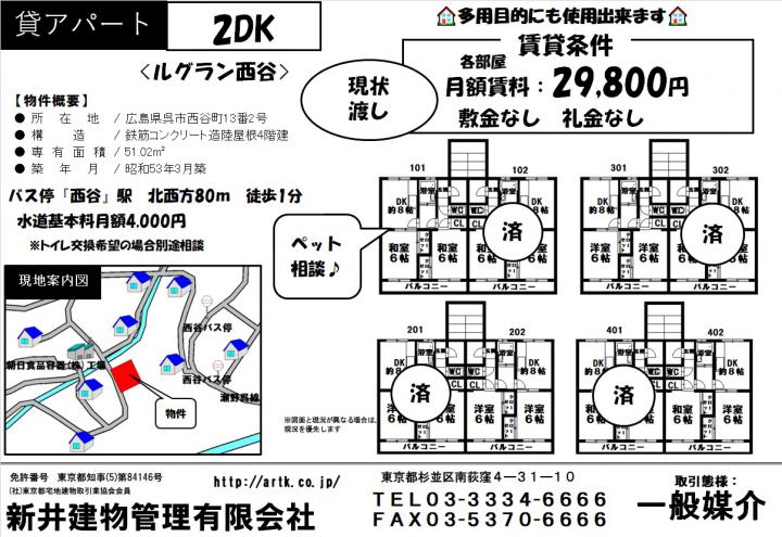 | 物件名 | 広島県呉市西谷町13-2 2DK 29,800円 |