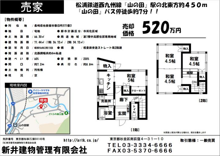 長崎県佐世保市春日町571番3 4K 520万円 520万円/ 4 K 松浦鉄道西九州線『山の田』駅 北東方約450m バス停「山の田」 徒歩約7分 長崎県佐世保市春日町571番3 4K 520万円 |
