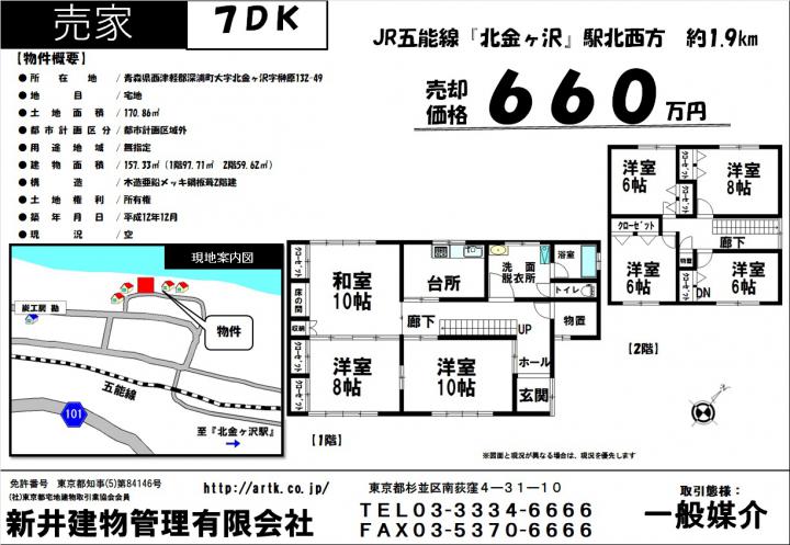 青森県西津軽郡深浦町大字北金ヶ沢字榊原132-49 7DK 660万 660万円/ 5 DK JR五能線『北金ヶ沢駅』駅北西方 徒歩 24分 青森県西津軽郡深浦町大字北金ヶ沢字榊原132-49 7DK 660万 |
