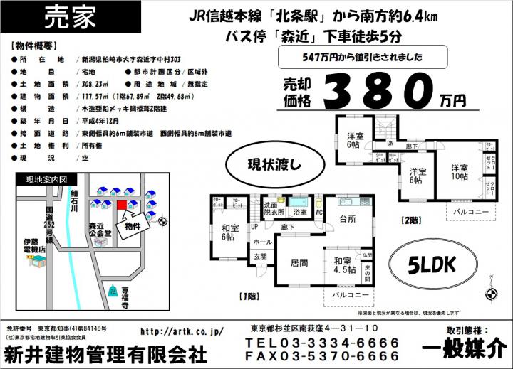 | 物件名 | 柏崎市大字森近字中村303 5LDK 130万円 |