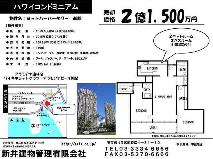 | 所在地 | ヨットハーバータワー40F 1650 ALA<OANA BLVD #4007 |