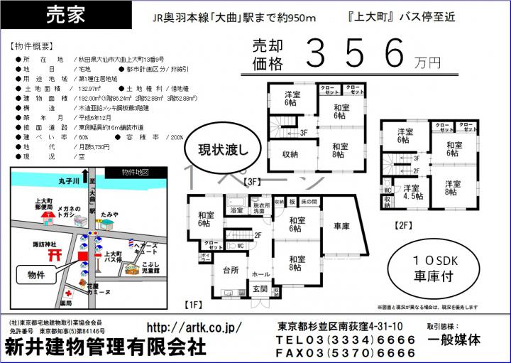 | 物件名 | 大仙市大曲上大町13番9号 10SDK+車庫 356万円 |