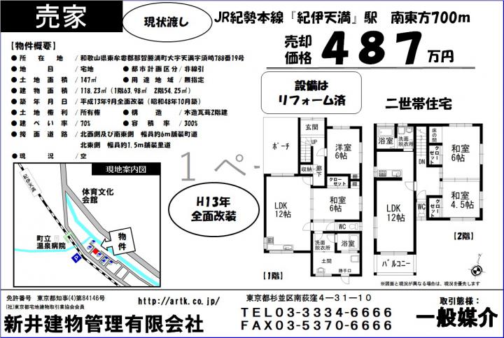 | 交通機関 | JR紀勢本線『紀伊天満』駅 南東方700m 徒歩 8分 |
