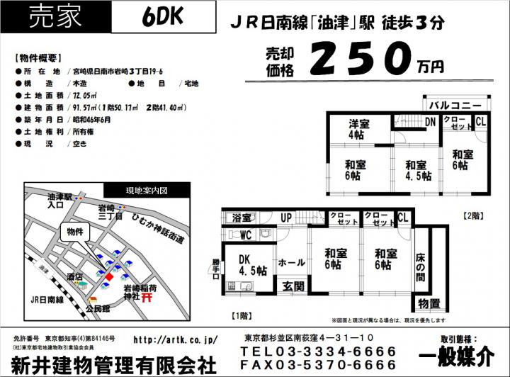 | 物件名 | 日南市岩崎3丁目19-6 6DK 250万円 |