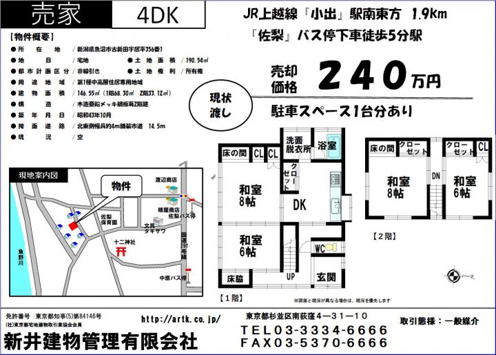 | 所在地 | 魚沼市古新田字居平356-1 4DK 160万円 |