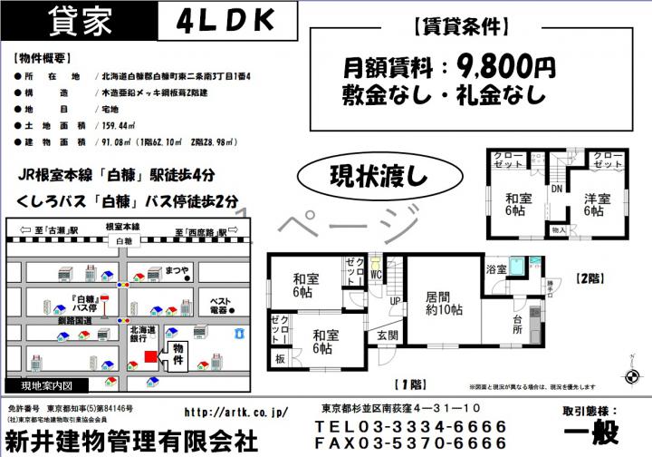 白糠郡白糠町東二条南3丁目1番4 4LDK 198万円白糠郡白糠町東二条南3丁目1番4 4LDK 198万円