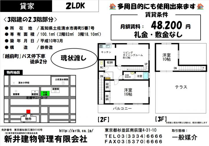 土佐清水市寿町5-7 2・3階 2LDK 48,200円 48,200円 / バス「越前町」停留所 徒歩2分 土佐清水市寿町5-7 2・3階 2LDK 48,200円 |