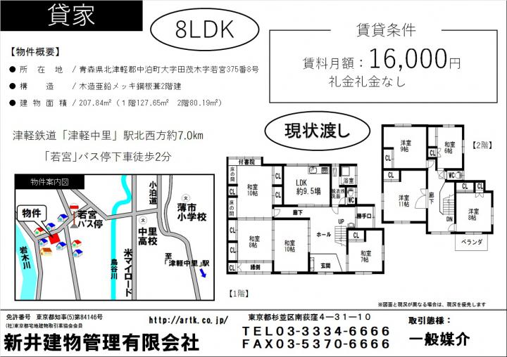 | 物件名 | 北津軽郡中泊町大字田茂木字若宮375-8 8LDK12,100円 |
