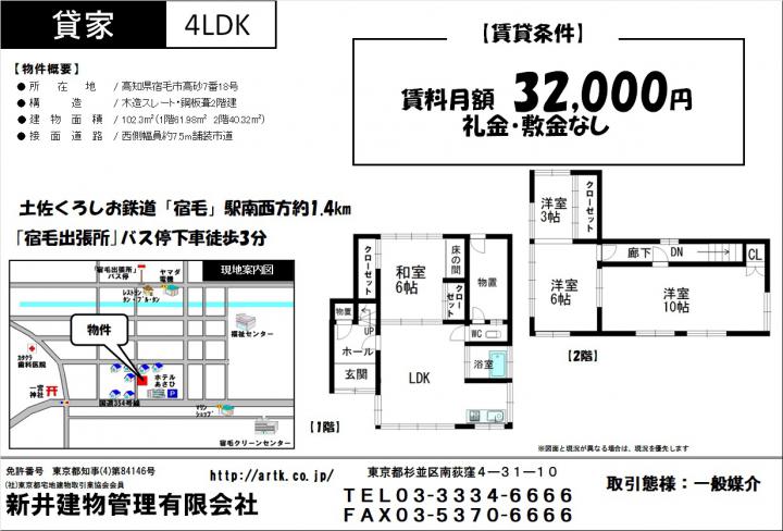 | 物件名 | 宿毛市高砂7-18 4LDK 32,000円 |