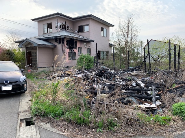 現状渡し。隣家火災による延焼ありそのままの状態