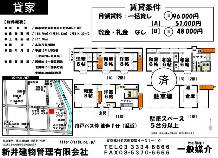 | 物件名 | 栃木県那須郡那珂川町小川791番1 【A】5LDK 51,000円 |