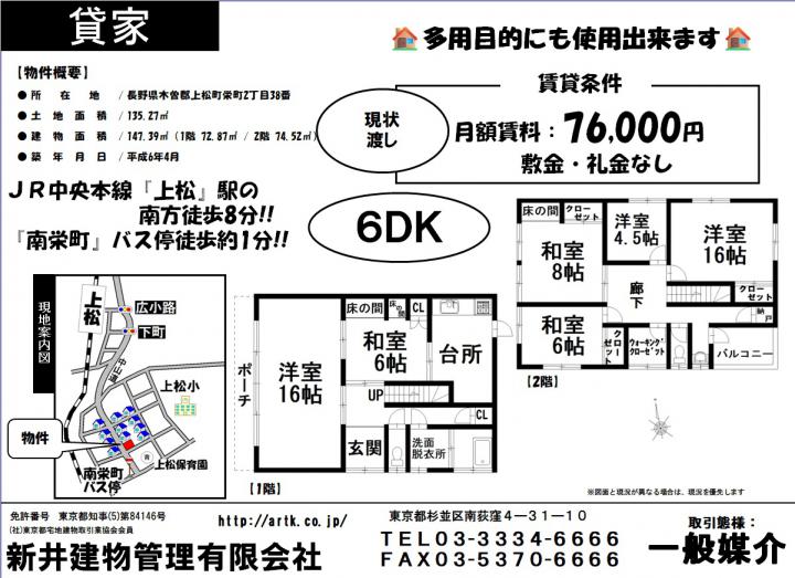 | 物件名 | 木曽郡上松町栄町2丁目38番 6DK 76,000円 |