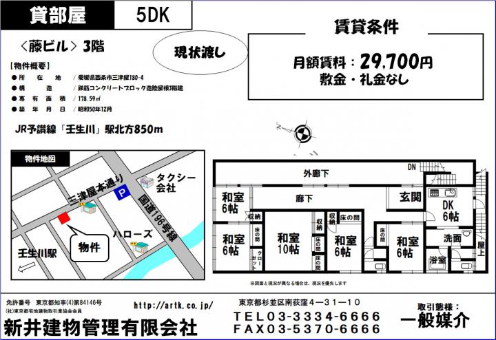 | 物件名 | 西条市三津屋180-4 藤ビル3F 29700円 |