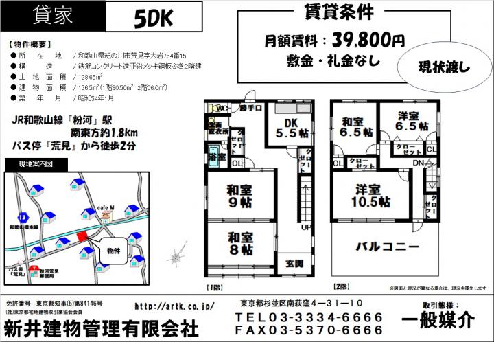 | 物件名 | 紀の川市荒見字大岩764番15 5DK 39,800円 |