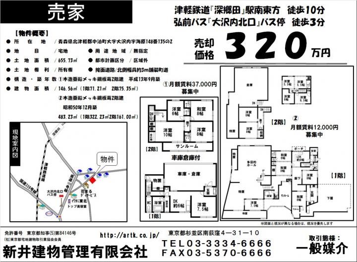 青森県西津軽郡深浦町大字北金ヶ沢字榊原132-49 7DK 660万 660万円/ 5 DK JR五能線『北金ヶ沢駅』駅北西方 徒歩 24分 青森県西津軽郡深浦町大字北金ヶ沢字榊原132-49 7DK 660万 |