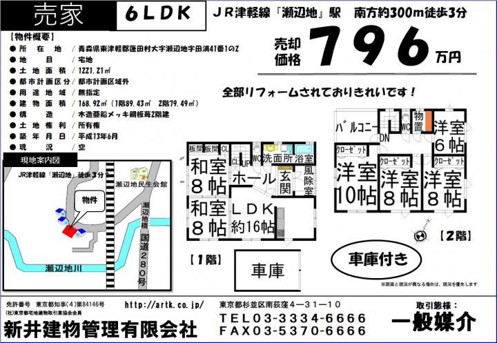 | 交通機関 | JR津軽線『瀬辺地』駅 南方300m 徒歩 3分 |