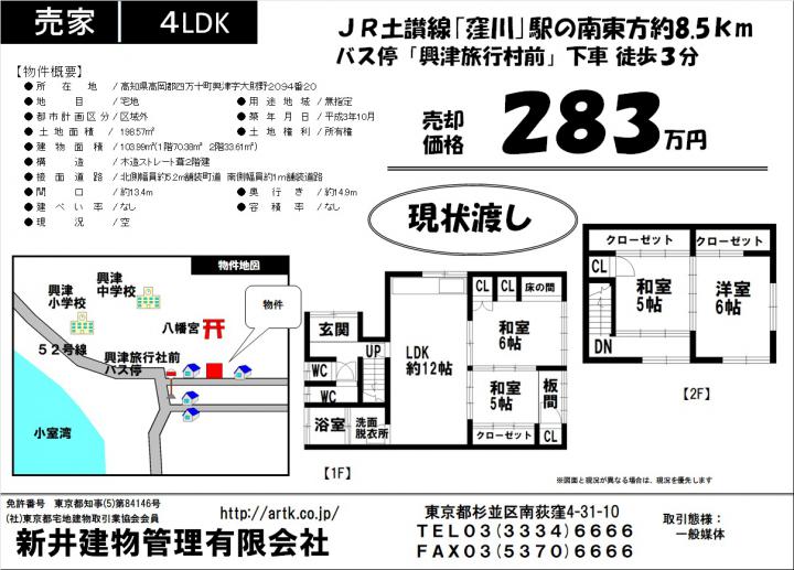 | 物件名 | 高岡郡四万十町興津2094-20 132万円 |
